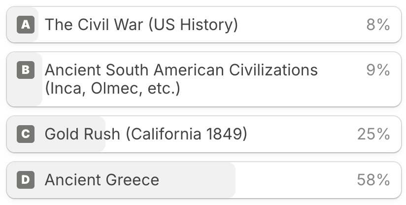 The winner of the vote is ANCIENT GREECE! The episode will come on January 11, 2026! Look below for the voting results.
